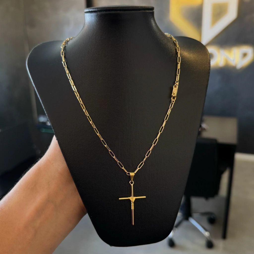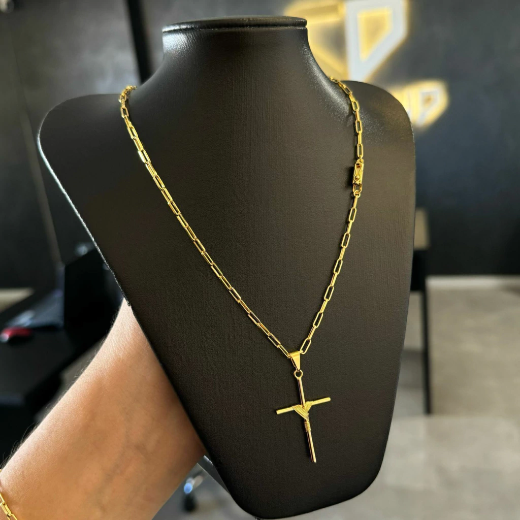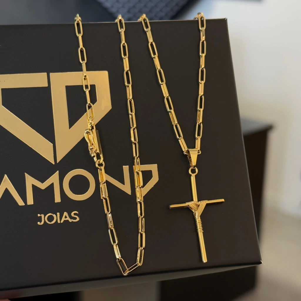 Dimensões: Corrente com aproximadamente 4mm de grossura,e o tamanho pode ser escolhido entre (60cm ou 70cm) de comprimento. Pingente 4,5cm x 2,5cm.