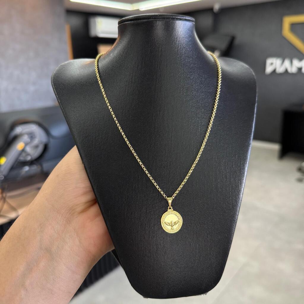 Corrente Elo Português 45cm (Fecho Tradicional) + Pingente Medalha Espírito Santo (P)