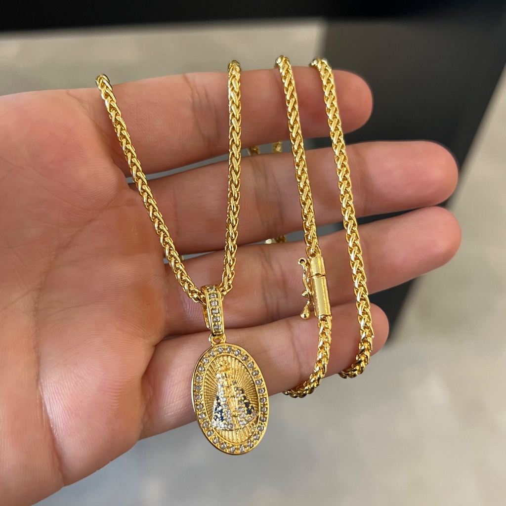Corrente Peruana 3mm + Pingente Nossa Senhora Oval Cravejado (Fecho Canhão)