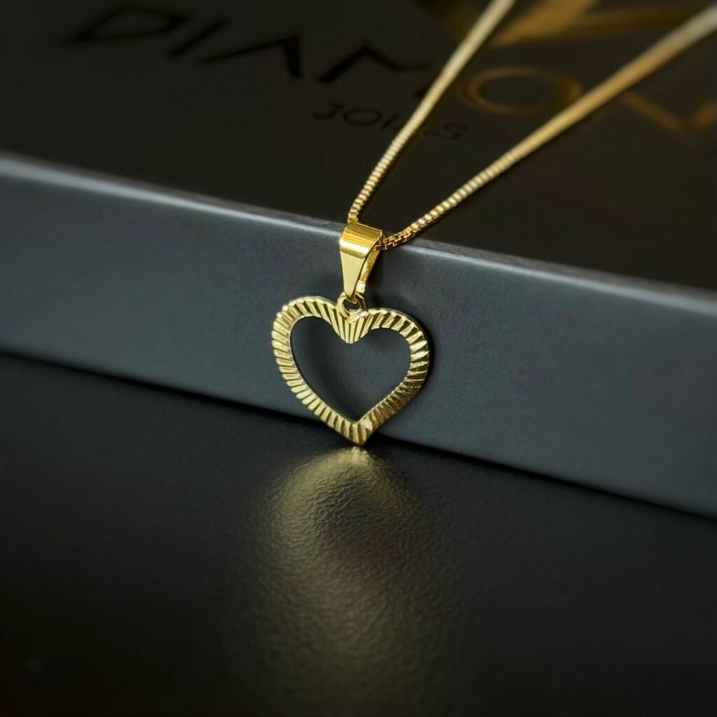 Banho: "Joia 100% banhada a ouro 18k com acabamento em verniz e 1 ano de garantia."